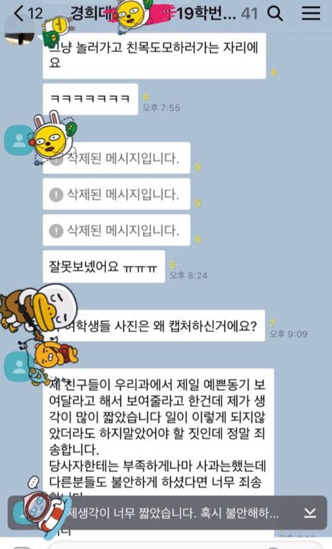 그리고 카톡 사진 캡쳐한 것 같고 그런다고 '그럴 수도 있지~' 이러는 애들은 꼭 나중에 한 번 당하길 바람 ㅇㅇ. 남이 너도 모르는 네 얼굴얘기를 지들끼리 한다 생각해보렴 ㅇㅇ