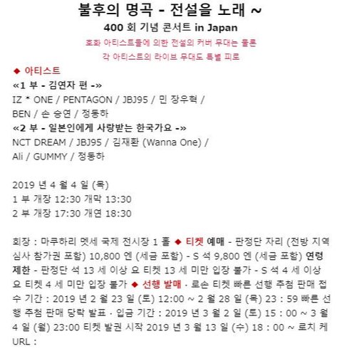 두번째 공식 스케줄은 일본 불후의명곡 출현이래 ㅠㅠ