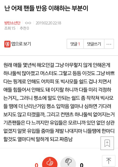 밑에 난 어제 팬들 반응 이해 어쩌고 여기서봐