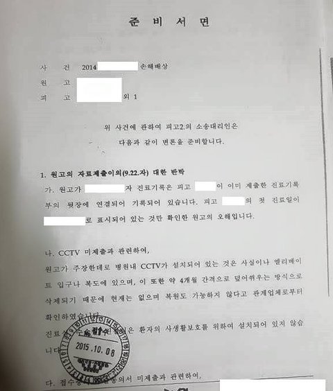 - ‘의료법시행규칙 제15조에 의료인이나 의료기관 개설자는 법 제22조제2항에 따른 진료기록부 등을 다음 각 호에 정하는 기간 동안 보존하여야 한다. 다만~ ’ 병원에서는 수술을 하게 되면 조산기록 등 모든 기록 환자명부, 의료차트부터 시작해서 11가지가 넘는데 하나도 없다고 합니다. 병원 CCTV가 있는데 처음 사실 조회 때는 없다고 하다가 나중에는 있기는 하지만 덮어쓰는 과정에서 조작이 되어 확인이 어렵고 복원도 가능하지 않다고 합니다. 소송이 진행될수록 담당의사의 거짓말은 늘어만 갔습니다. CCTV기록은 삭제되었고, 복원도 가능하지 않다는 이유로 증거를 은폐했지만 담당의사의 거짓말은 여러 자료에서 확인이 되었습니다. 담당의사 준비서면에서 진료기록은 진료기록부 뒷장에 연결되어 기록되어 있다며 경찰서의 조사결과를 반박하다가, 시간이 지나 검찰에 제출하여 돌려받는 과정에서 분실하였다고 하면서 거짓진술하고,(처음부터 낙태수술접수증과 수술동의서가 없었음)