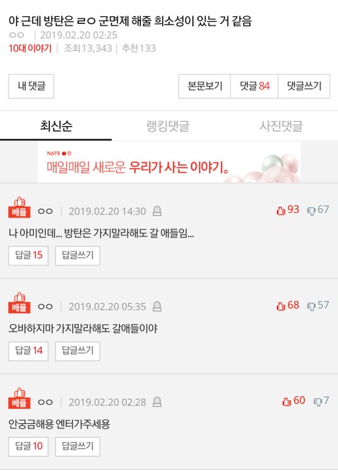 톡선에 방탄 군대글 베플좀 바꾸는게 좋을듯 해서