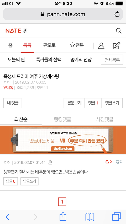 댓글 많은 톡
