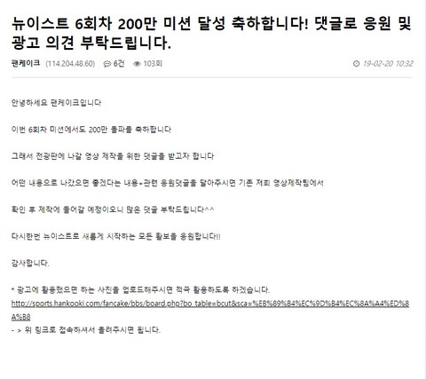 서울 명동 전광판 및 주간한국 지면 광고에 나갈 뉴이스트 홍보 내용... 댓글로 의견 받고 있습니다.