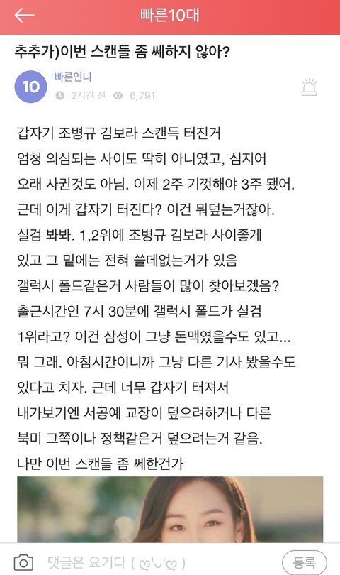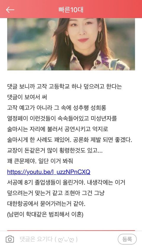 어우 그놈의 음모론 지겹다진짜 ㅋㅋㅋ 뭐만하면 덮을라고.. 그정도 사건은 매일있음 한국에 사람이 몇명인데.. 그리고 커뮤 자주 보고 유튜브도 보고 하는 우리나 서공예 비리 알고있지 다른 연령대 사람들은 잘 모름 당장 네이버 기사 갯수만 비교해봐도 알 수 있지않냐