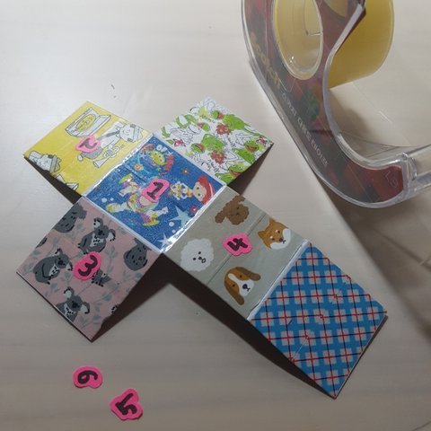 그리고 숫자를 자르고 각 칸에 하나씩 대면서 차례대로 테이프로 붙여줘! (테이프도 2줄 붙이면 꽉 찰 거야)