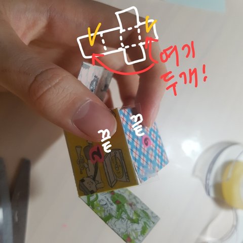 짜잔 한 쪽만 테이프를 붙여줬는데도 벌써 완성한 것 같지?? 이 상태로 모든 모서리를 테이프로 이어주기만 하면 완성이야