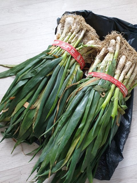 추운겨울 을 이기고나온 통통하고 짧은 대파 두단을 경동시장에가서 구입했어요.