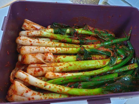 양념부분을 사진을 준비못했네요...다른것과달리 파김치는 양념도 간단하답니다. ..준비된 젓갈에 고추가루 설탕조금 생강 검정깨 진간장약간,,,,,,저희 친정엄마가 예전에 파김치에는 마늘을 넣지않아도된다는 소리를 들은거같아요 그래서 마늘은 생략하였습니다.