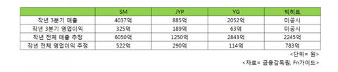 2018 소속사(SM,YG,JYP,빅히트) 수익