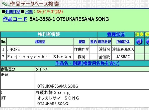 오츠카레는 제이홉 자작곡이고 윤기도 솝 화개장터에서 자신은