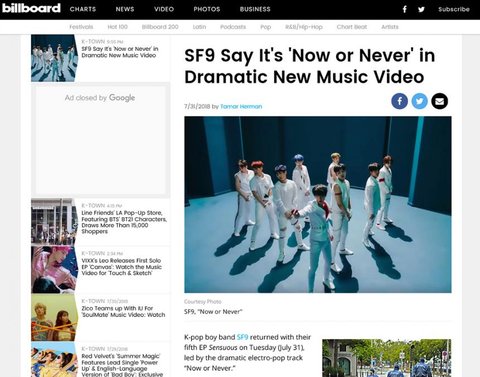 어쨋든 SF9에 대한 반응이 빌보드에서도 조금씩 나오기 시작한 것 같아요.