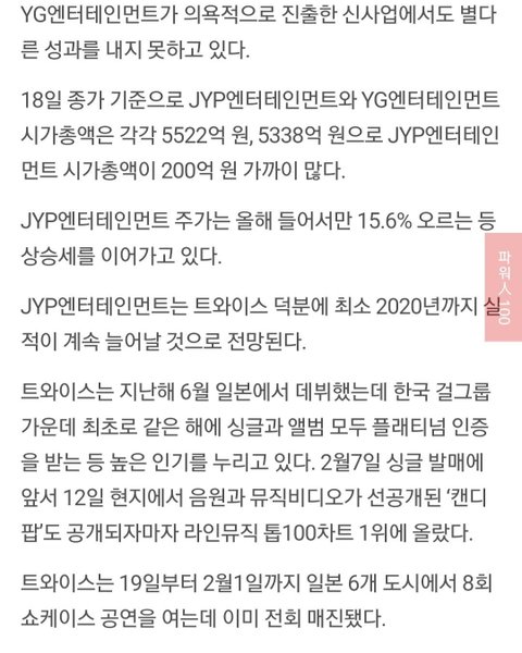 작년이네 지금은 비교도 안됨 더 벌어짐 sm이랑 jyp랑 투톱이고 yg는 저 밑임