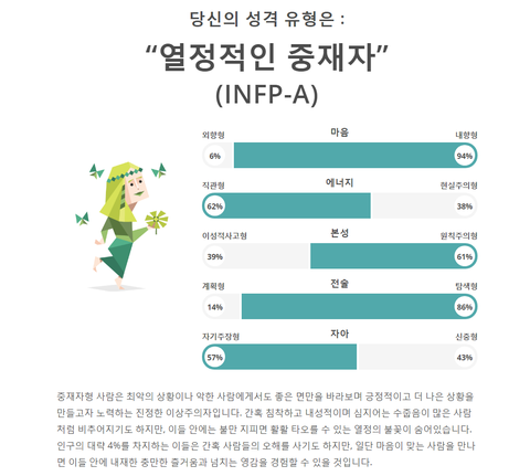 난 INFP-A나왔당 완전 정확해...ㅋㅋㅋㅋㅋ