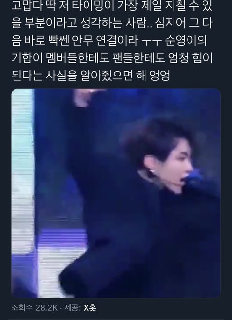 ㅌㅇㅌ에서 보고 감덩함 ㅠㅠ 난 단순히 흥이 넘쳐서 그런걸로만 생각했는데 멤버들 지쳤을때 힘내라는 뜻일수도 있다니 ㅠㅠ 엳시 권수장