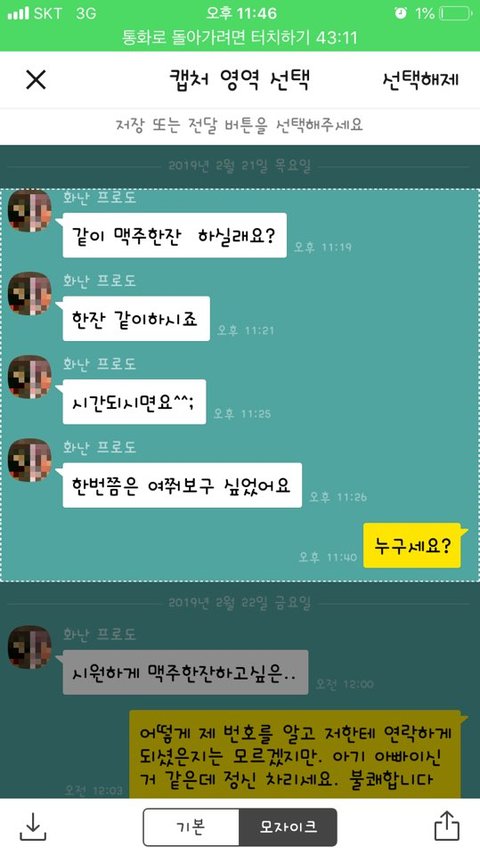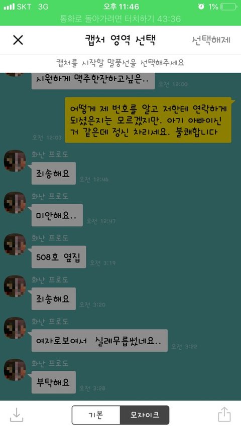아래와 같이 옆집남자한테 카톡을 받았습니다.