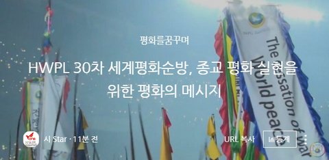 유튜브 라이브 영상 시청을 놓치신 분은 '종교 평화 실현을 위한 평화의 메세지'현장의 뜨거운 감동을 아래 영상을 통해 몸소 느껴 보시기 바랍니다.