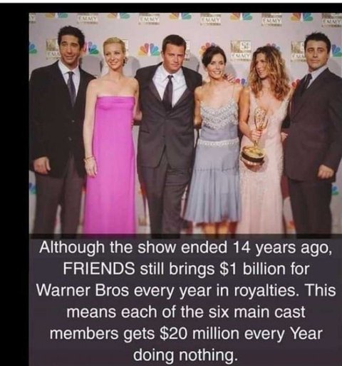 프렌즈의 주인공 6명 배우들은 각 통장에 매년 230억이 입금되고 있다.