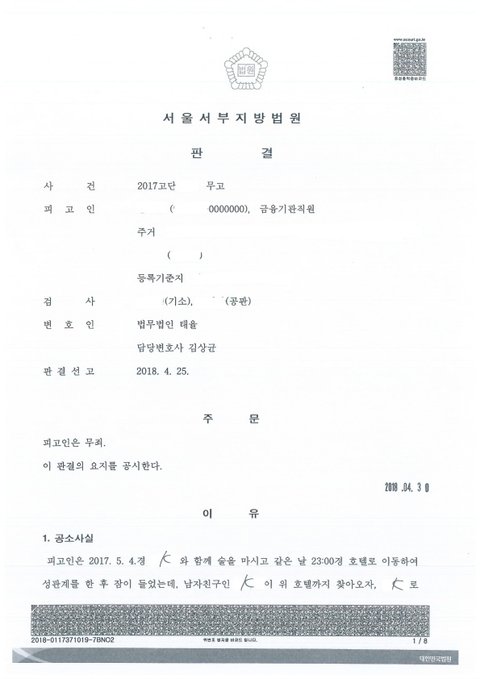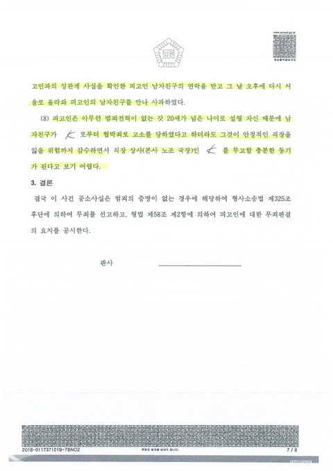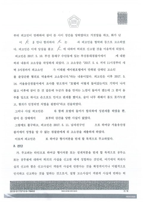 저는 정말 이해가 되지 않습니다. 이것이 정말 제대로 된 판결인지 모르겠습니다. 여자친구에게 허락을 구하고 판결문을 받았습니다. 1심과 2심 판결문을 본 글과 같이 올려봅니다.