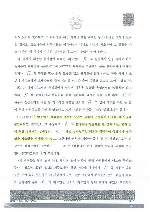 성관계를 해보신 분들은 아실겁니다. 성관계를 하면서 다른 사람 이름을 부른다니요. 그건 정말 상식적으로 말이 되지 않습니다. 게다가 K는 증거인멸을 했고 1심 법원에서 증언할 때 증거인멸을 하지 않았다고 위증까지 했습니다.