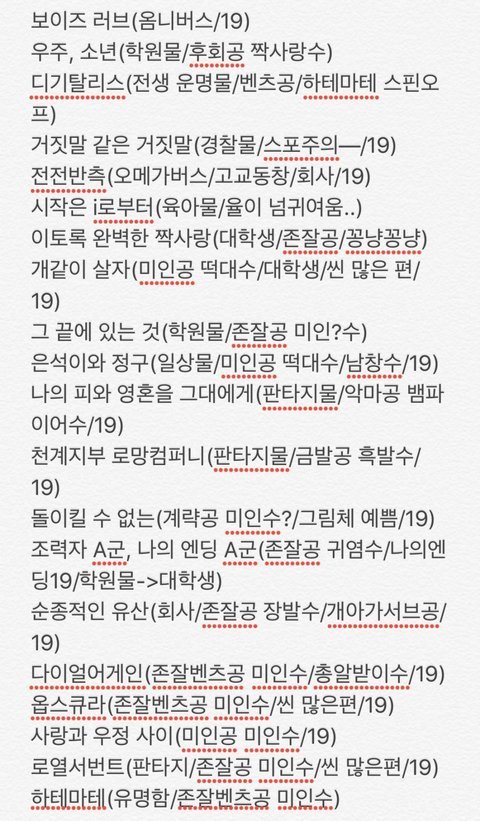몇몇 단편물이나 정말 내 취향 아니었던건 그냥 뺐어ㅜㅜ