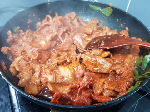 원래는 정육점에서 양념되어 있는 주물럭을 사먹는데 그날따라 동네정육점이 리모델링을 하여서 문을 닫었더라구요 ㅠㅠ 그래서 전지살 사서 양념해서 볶아먹었는데 약간 짜긴햇지만 맛있었어요 !