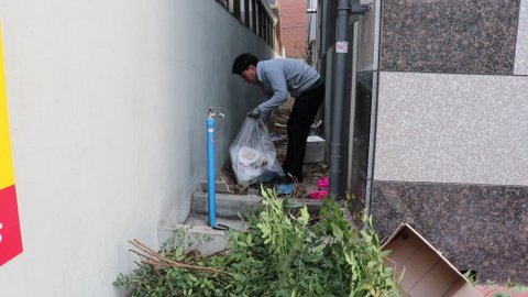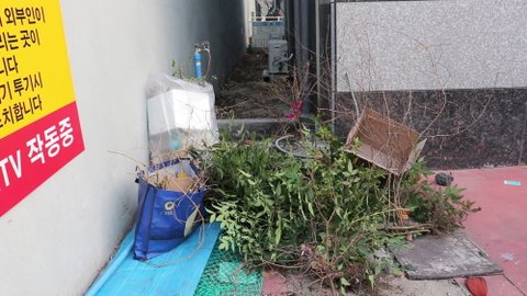 "화단쪽에 이물질들과 쓰레기들로 인해 벌레와 악취가 심한데