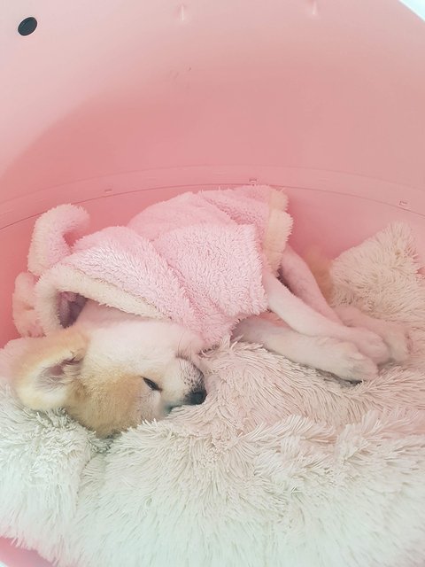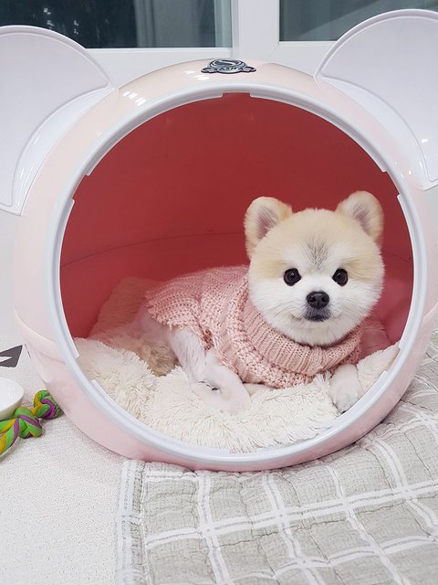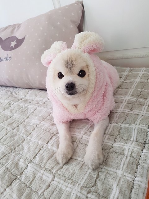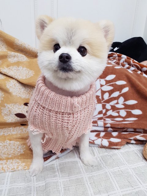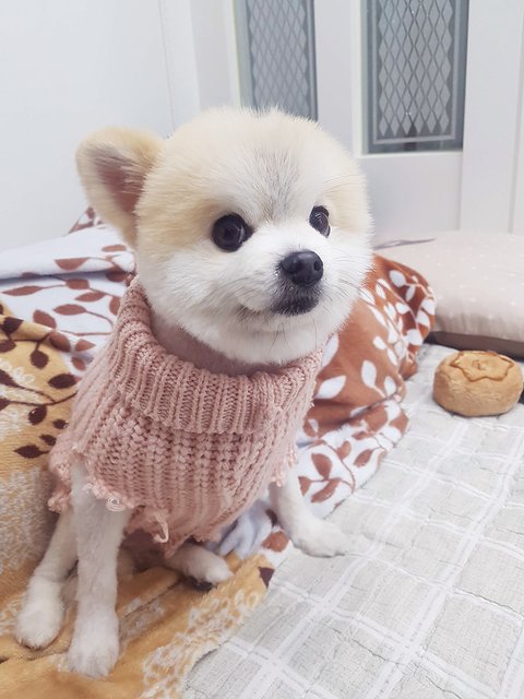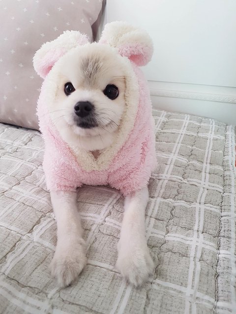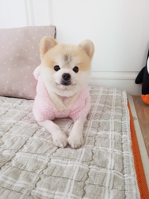 첫째 병원진료 때문에 이른 미용을 하고 추울까봐 옷 입혀주다가