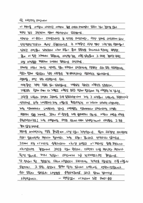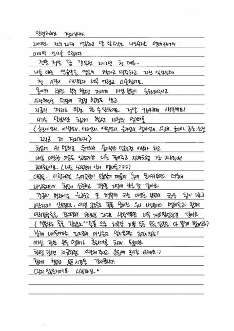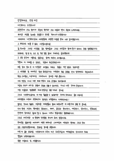 팬들에게 손편지 쓴 나뮤