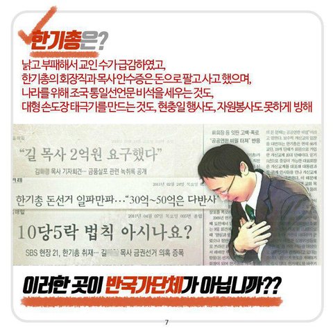 이것이 과연 정통이겠습니까? 한기총이야말로 반국가, 반종교 이단이라고 생각하지 않으십니까? 이 글을 읽으신 독자 여러분께서 판단해주시기 바랍니다.