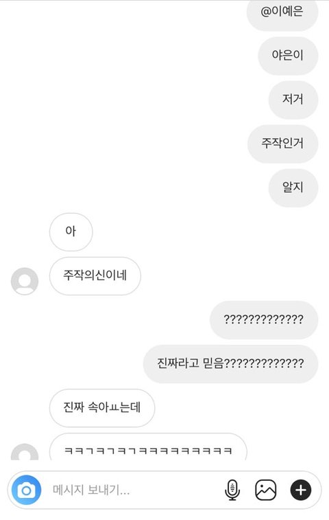 내가 양싸한테 애걸복걸하면 해줄수도ㅇㅇ 하니까 저렇게 디엠보냄 나한테 이게 넘 웃겼음ㅋㅋㅋㅋㅋㅌㅋㅋㅌㅋㅋ