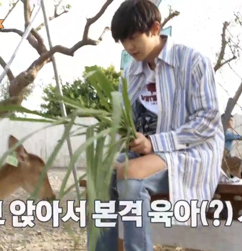 사슴에게 먹이를 줄때도 바지 구멍 뭐야ㅋㅋ 저러다 반바지 되겠다했는데ㅋㅋㅋㅋ