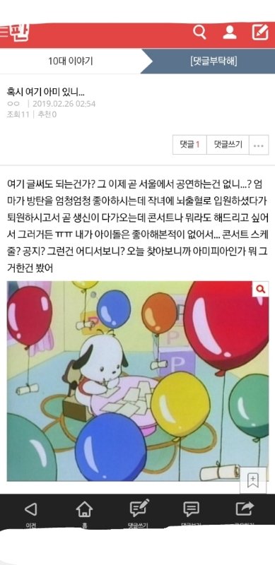 이 글쓰니인데 잘몰라서 10대 이야기에 썼다가 팬톡으로 오라고 해서요 ㅠㅠ