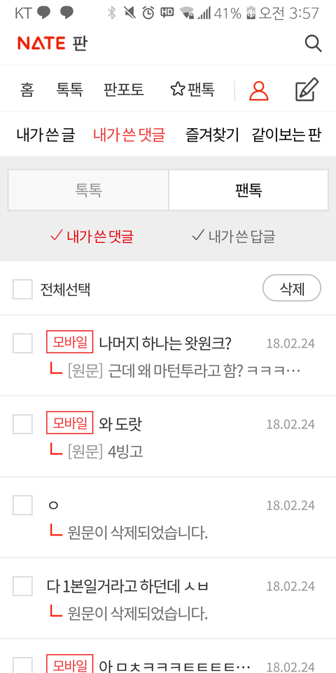 종나 지워도 지워도 끝이 없음 한참 지운 것 갘은데 아직도 1년치만 지움 16년도에 나 엑톡에서 살다시피 했는데 종나 언제 다 지우냐 16년은 커녕 아직 17년도 못지움