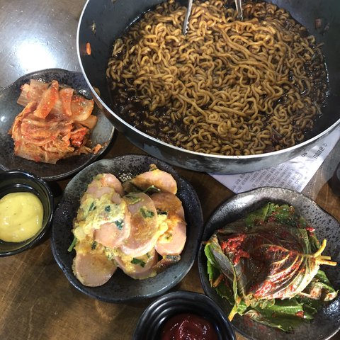 짜파게티 먹을 땐 김치에다가 먹는게 제일 맛있는건줄 알았는데 양념깻잎이랑 같이 먹어도 JMT 이에요