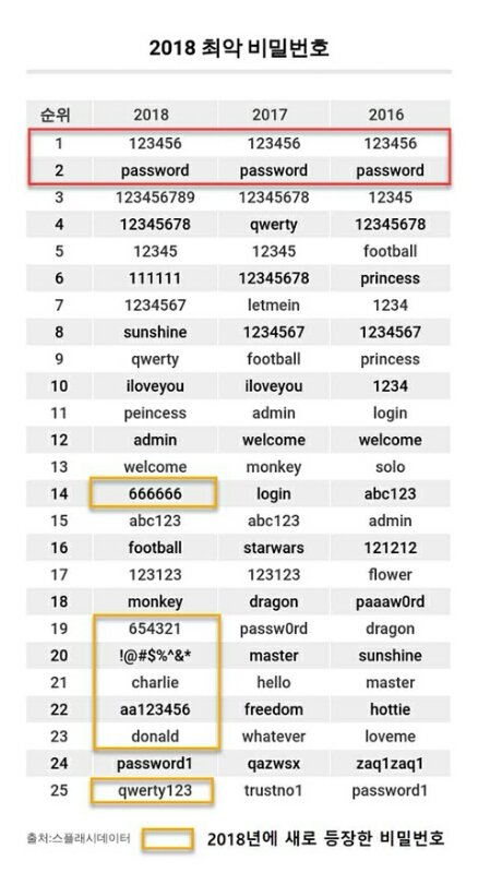 암호업체가 선정한 최악의 비밀번호ㄷㄷ