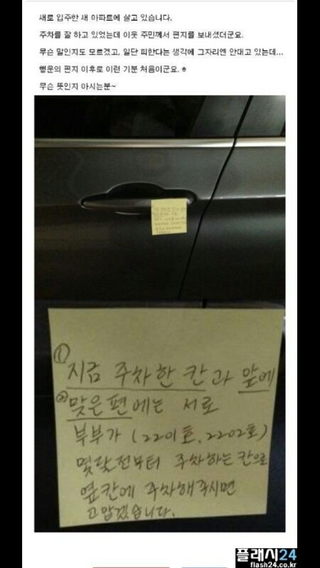 아파트 주차장 쪽지 ㄷㄷ