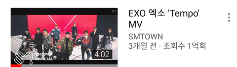 템포 뮤비 3개월에 1억뷰 럽샷2개월에 9400만뷰면