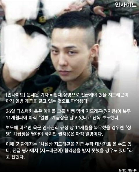 빅뱅 GD 군대 진급 누락된 이유ㅋㅋ