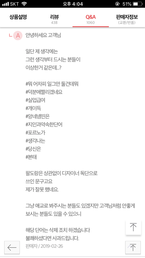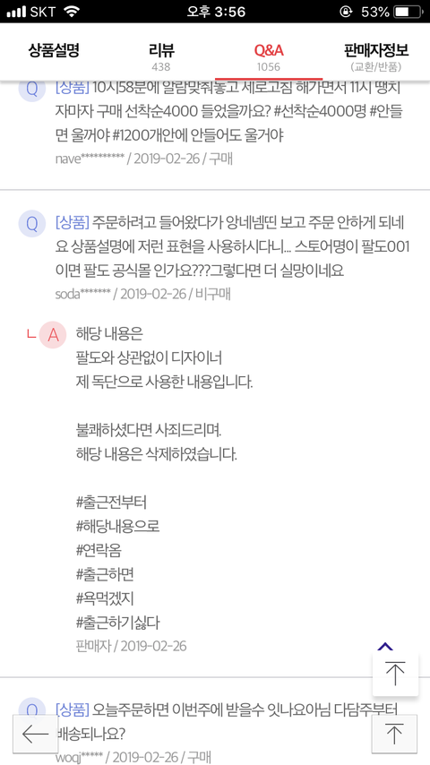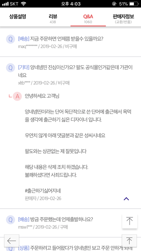 지금은 문의글에 저걸 문제 삼는 소비자껀 하나도 답장 안하고 다른 일반문의글에만 답장하더라ㅋㅋㅋ 본사랑 11번가에 문의 넣어야할듯