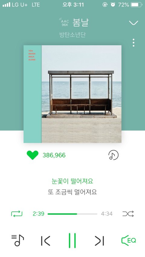 어제도 그렇고 오늘도 날씨 개꿀?곧 봄 올듯그래서 나 지금 멜론에서 봄날 무한재생중…벚꽃엔딩만큼이나 봄날로 눈꽃연금 만들어보자 얘두라..언능 멜론에서 봄날 스밍해 역주행가즈아