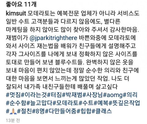 파란색 수트가 박재범이 선물한 맞춤 수트임