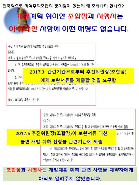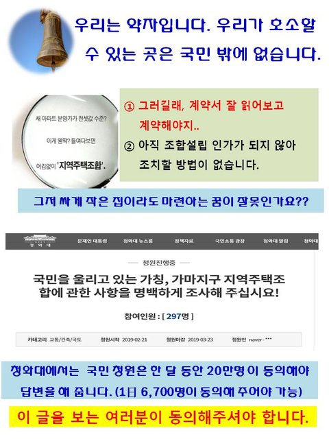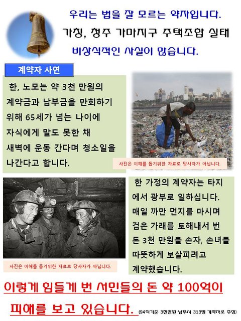 주택조합 추진주최에 부당한 행위로 피해를 보시는 선량한 시민들을 도와주세요!