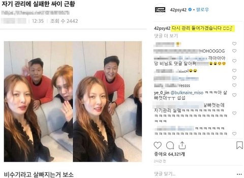 그 글을 본 싸이가 바로 자기 인스타에 사진을 올리면서