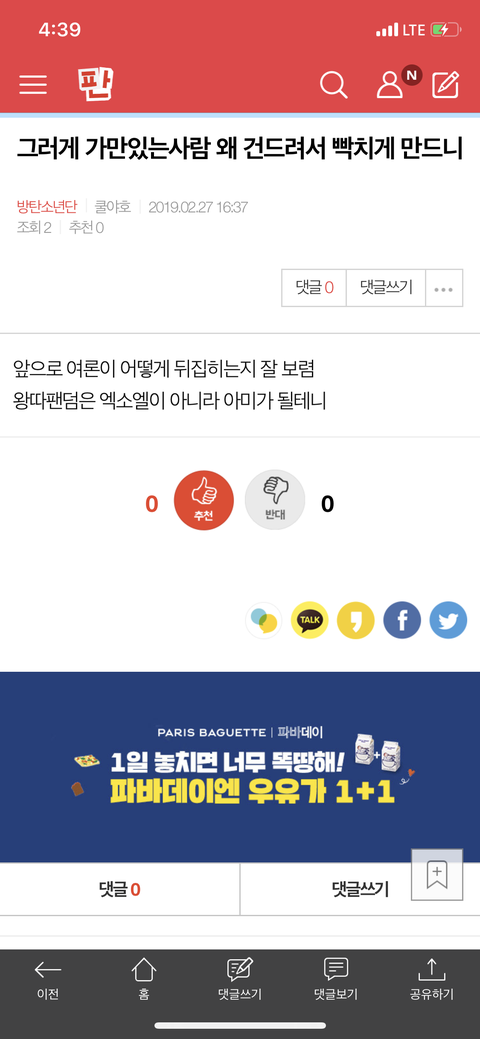 이글 댓 ㄴ 추천 ㄴ 다 스루