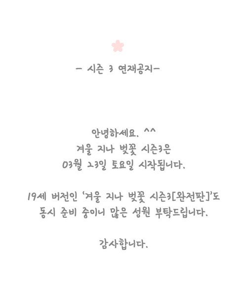 겨울지나벚꽃 드디어 시즌3ㅠㅠㅠㅠㅠㅠ