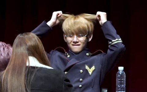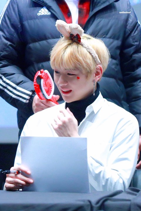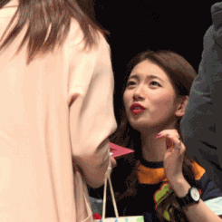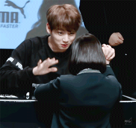 팬의 눈물을 보고 놀라서 휴지를 건넨다
