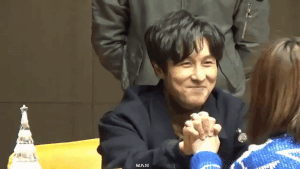 손깍지 끼고 아이컨택 하면서 웃어주기