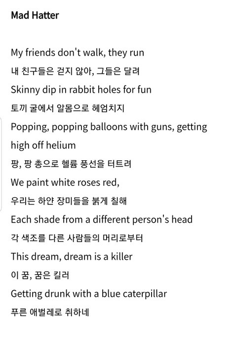 이게 mad hatter야 급하게 찾아오느라 해석 좀 발해석임...이해해줘...
