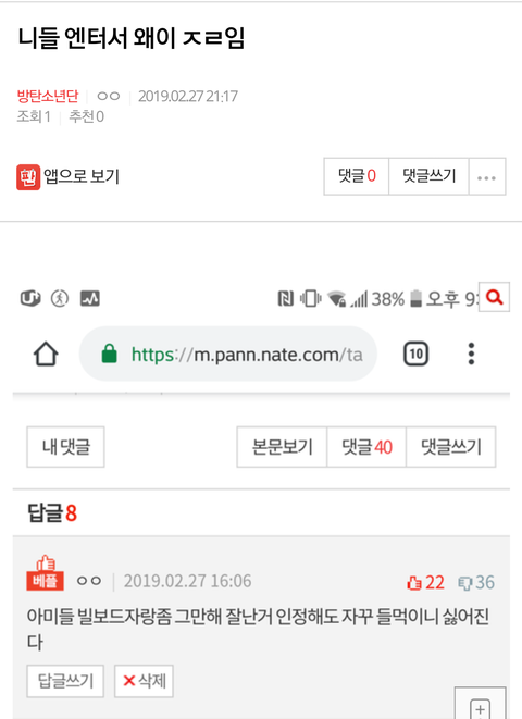 니들 엔터서 밑글 여기서봐+)댓포함