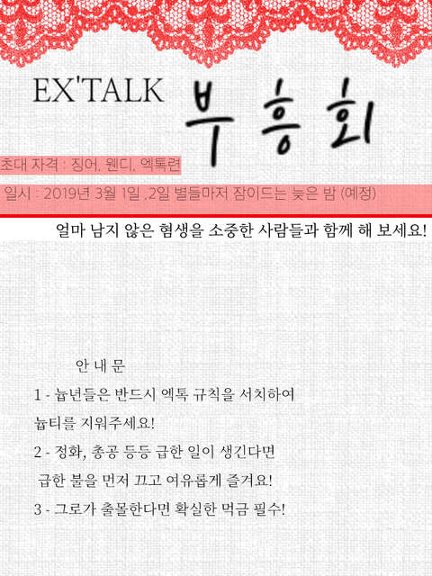 이번주 금요일 토요일 아홉시 반에 엑톡에 모여라